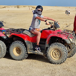 We will pick you up from your hotel and bring you to the Quad Bike training station. There you will receive instructions on how to drive your Quad Bike correctly and safely. And also make some test laps under the supervision of an instructor. All Quad Bikes have an automatic control system, so in order to ride, you just need to apply the gas and the brake. Learning to drive a Quad Bike is not difficult at all, we are sure you will succeed ! The trip starts Quad driving for around 30 km , including 1 stop after 15 km drive for break and 1 stop in a Bedouin village to ride camels and drink Bedouin tea , you will see how they live, making bread in the bakery, and the pharmacy, you can climb the mountain too ,then drive back 30 km to our quad station then open buffet dinner with barbecue, then oriantal show ( belly dancer , tanoura show , folklore show and fire show ) Included \ Excluded ✔️Private transfer from your hotel and back. ✔️private guide. ✔️Visiting the Bedouin village and discovering the Bedouin's ✔️ eat bread and drink Bedouin tea. ✔️Camel riding in the desert . ✔️View Sunset time . ✔️BBQ open buffet dinner . ✔️Oriental show . ✖️photo shooting session available on request at extra charge.